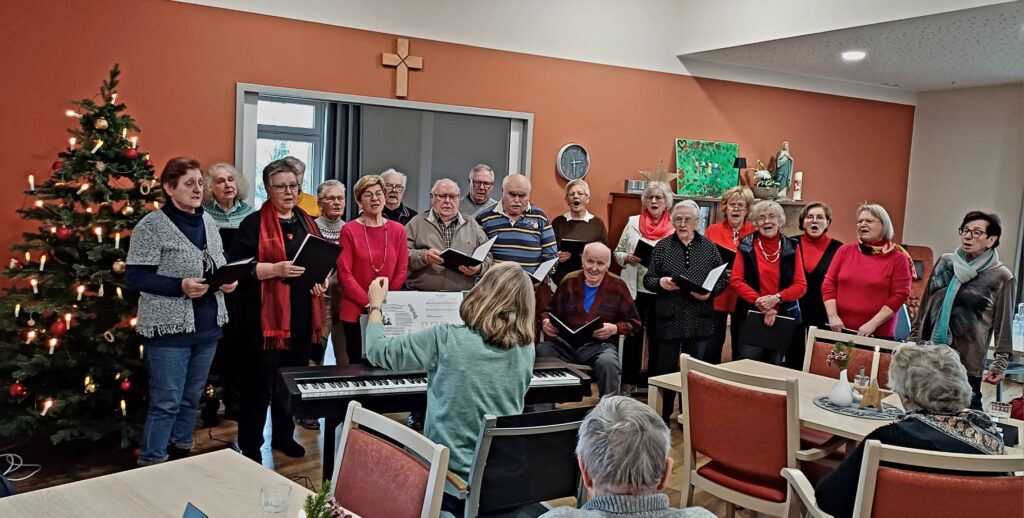 Am 11. Dezember erfreuten wir die Caritas-Tagesstätten Besucher in Johannesberg mit unseren Chorliedern zum Advent und sangen zusammen mit den betagten und erkrankten Menschen. Dankbar strahlende Gesichter und die Einladung zur Kaffeerunde waren Lohn für dieses Engagement.