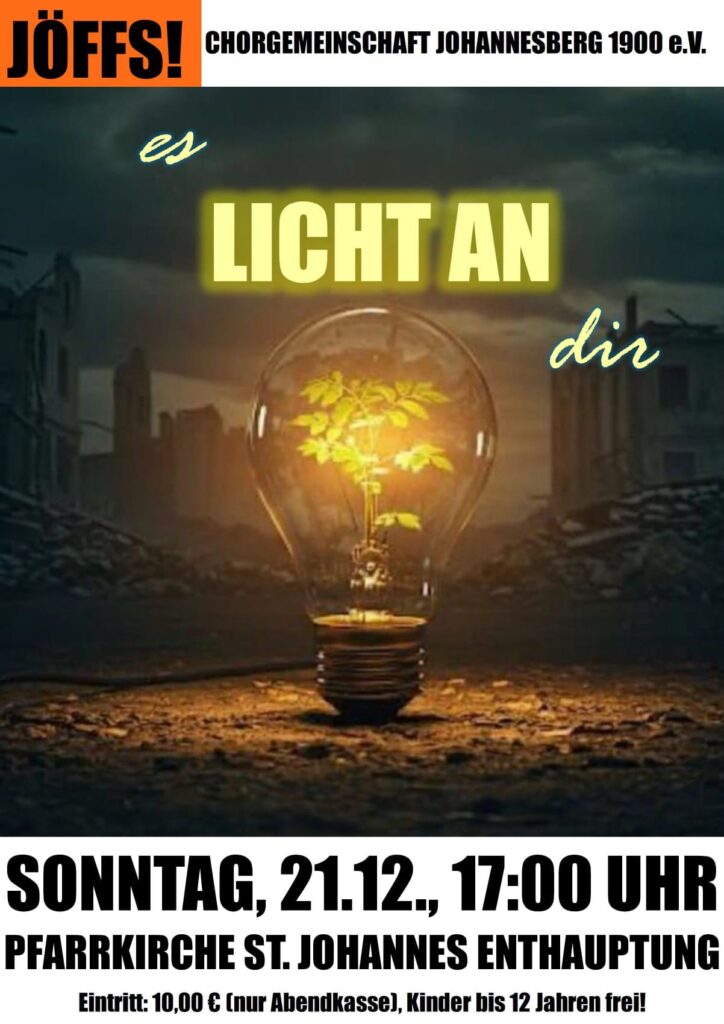 Wer die Jöffs! noch einmal live erleben möchte: Am 21. Dezember 2025 um 17 Uhr findet erneut ein Konzert in der Kirche Johannesberg statt – auch dieses Mal stimmungsvoll bei Kerzenlicht mit dem Titel „Es Licht An Dir“ – Karten gibt es vor Ort.